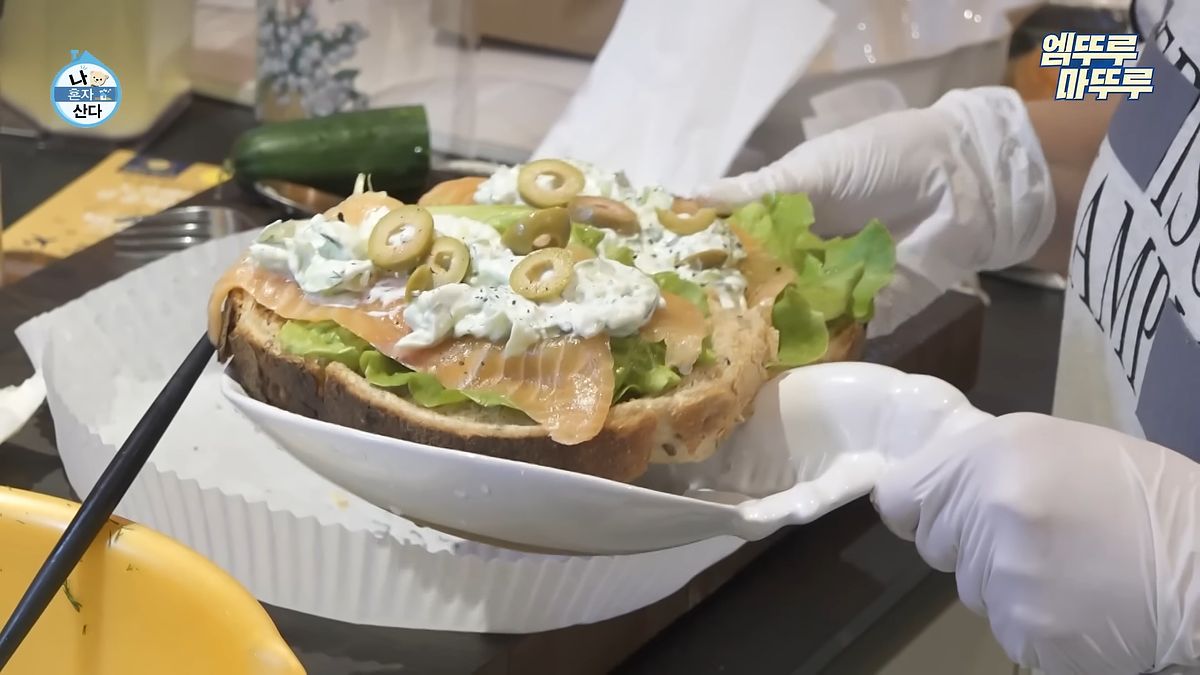 調料的部分娜勑以小黃瓜、香料切碎,加上希臘優格、蘋果醋搭配調味,整體既味道不會過於濃郁,酸酸甜甜也很適合夏天的燻鮭魚黑麥麵包就誕生啦!這樣飽足感很夠,也一次將澱粉、蔬菜、蛋白質通通攝取完成!