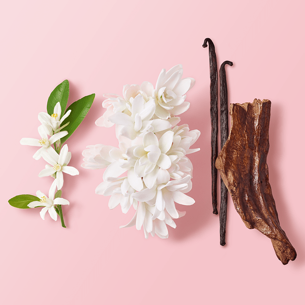 以柔潤淡雅的法國西南部新喀里多尼亞島上的檀香與馬達加斯加頂級香草,做為後調的勾魂 餘香,烘托出香調中白色花朵最奢華的特質,沉靜檀香與雅致的香草香氣溫潤且溫暖人心, 在輕甜淡雅與醇厚沉穩中精巧調配,喚醒嗅覺觸動情感,宛若綻放的花朵般擁有絢麗奪目的 光芒,凝聚成自我力量,內斂內心的堅定悸動,煥發優雅璀璨的動人自信。