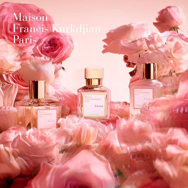 自2014年推出以來,À la rose愛戀玫瑰已成Maison Francis Kurkdjian最具代表性的香水之一,誠心頌讚女性與生俱來溫婉卻堅定不移的熱情性格。每瓶À la rose愛戀玫瑰,都蘊藏至少400朵玫瑰的精華:250朵摘採自南法格拉斯的千葉玫瑰,隱逸帶有蜂蜜氣息的玫瑰花香;150朵保加利亞大馬士革玫瑰,揉合清新梨香和荔枝果香。此外,為擺脫傳統玫瑰香水給人過時、不符潮流,甚或陳腔濫調的負面刻板印象,天才調香大師Francis Kurkdjian特別援引紫羅蘭、木蘭等複合花材,為一片玫瑰主旋律增添精彩協奏,使中調更顯圓滿豐盈;尾調汲取雪松木質調、麝香和千葉玫瑰,譜寫現代女性不屈不撓、既柔美又堅韌的卓爾氣韻。
