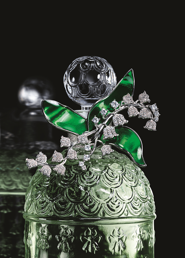 除了蘊含詩意,這次藝術性濃厚的合作也以瓶上這枝塑造成晶亮珠寶的鈴蘭頌讚雙方深厚美麗的友誼,可說是巴黎Francesco Truscelli工作室贈予嬌蘭的優雅幸運物。
