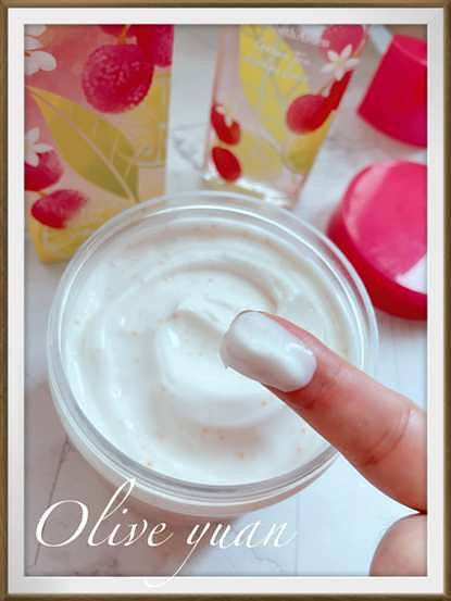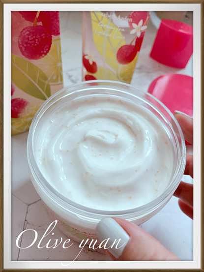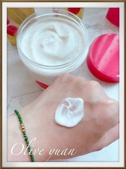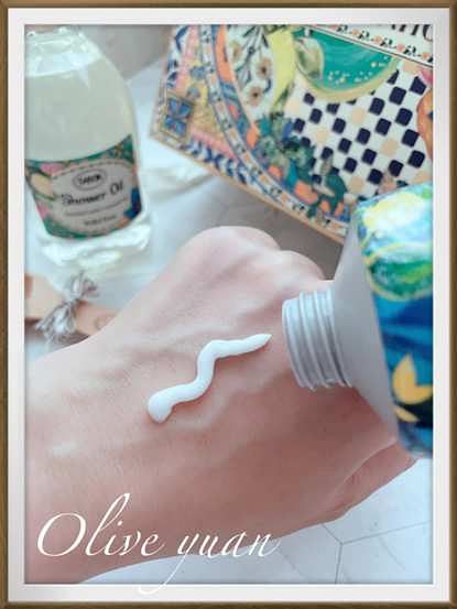 富含乳油木果油、甜杏仁油、蘆薈和維生素原B5,可增強肌膚談論與保濕度,另外還添加了乳酸,溫和AHA能提亮膚色,讓肌膚更柔軟不粗糙。我原本冬天都用橄欖系列,但夏天就換成這個系列,質地更清爽。