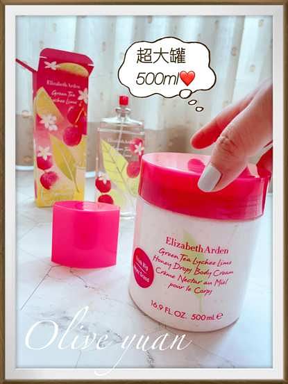 然後我最喜歡搭配限量香水推出的「綠茶荔枝萊姆蜜滴舒體霜(500ml NT1,300)」,除了超大罐!超便宜!主要是它的質地介於乳、凍之間,抹在肌膚上會有一股涼感,而且水水的很清爽,跟限量綠茶香水搭配使用,全身的香氛濃度變得剛剛好,又可以做到肌膚保養。
