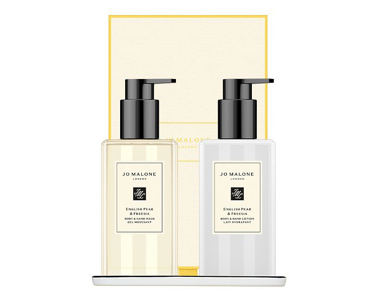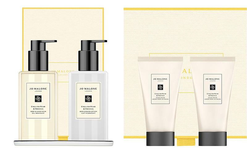 三款限量的身體香氛組合,讓您享受被香氛寵愛的放鬆儀式。英國梨與小蒼蘭潔淨潤膚香氛禮盒,讓您透過膚露和潤膚乳清潔並滋潤肌膚,清新舒服的香氣從每天的沐浴時刻開始,禮盒並含有優雅細緻的陶瓷展示托盤,裝點您的每個沐浴時框。英國梨與小蒼蘭護手霜禮盒則包含兩個50ml護手霜,輕巧便攜可全天候呵護雙手,觸感潤澤輕盈的配方不僅清透易吸收,蘊含杏仁油、鼠尾草提取物、乳木果油和維生素 E,更有助滋潤和保護肌膚。而英國梨與小蒼蘭奢華糅香旅行組則包含:英國梨與小蒼蘭香水9ml、英國梨與小蒼蘭潤膚霜50ml、英國梨與小蒼蘭潔膚露100ml,以及別緻的隨身化妝包,為隨時隨地開啟您的香氛之旅。