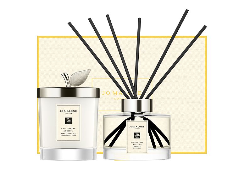 英國梨與小蒼蘭居家香氛禮盒,內含英國梨與小蒼蘭香氛工藝蠟燭和擴香。別緻精巧的梨子樣式燭蓋、限量的低調時尚設計感包裝,和為空間添餘韻悠長的香氣的藤枝擴香,為挑選居家禮物的您精選更多別緻的心意。而同系列推出的2.1kg的奢華工藝香氛蠟燭,則為家中增添一股奢華香氣,讓英國梨與小蒼蘭透過居家香氛散發馥郁芳香的誘人香氣。
