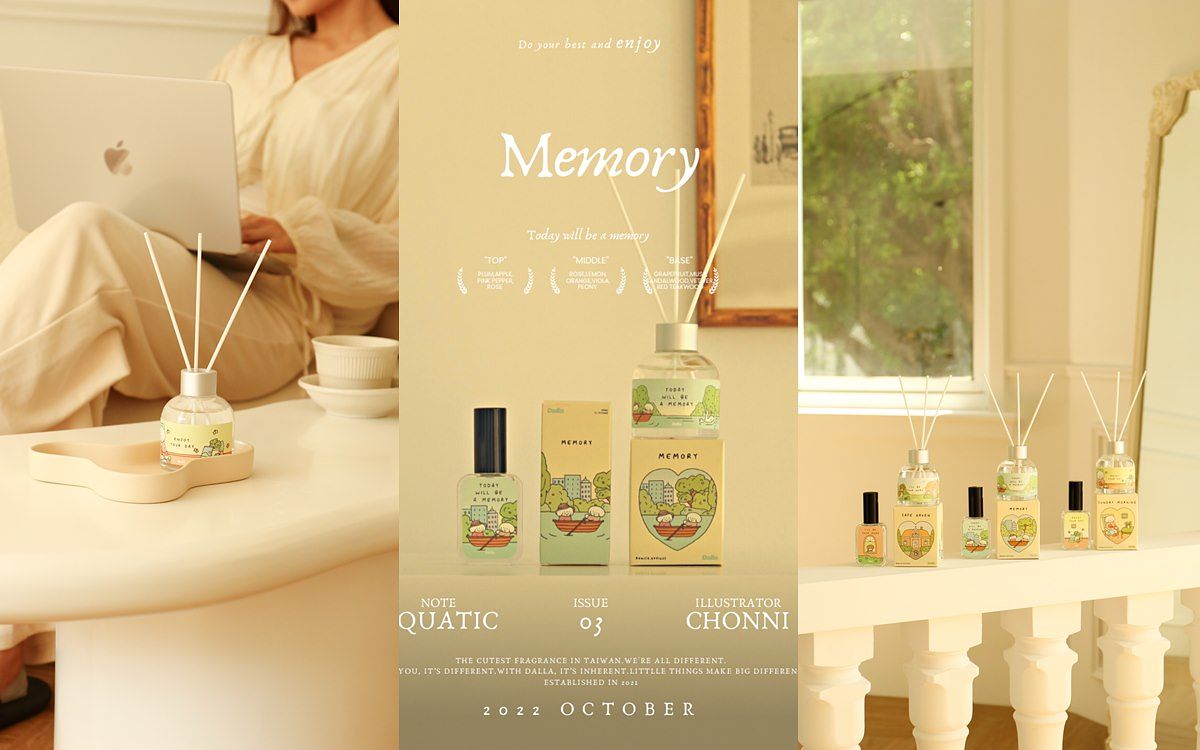 圖片來源:Dalla 進入2022年宜人的秋季,品牌推出第三期香氛新品共三款:愛之歸屬、回憶之水、週日早晨,每一款主題香氣都同步推出擴香與淡香水品項,以舒服自然的清新淡雅香味為主軸,不濃烈、不具侵略性,在視覺上特別邀請泰國人氣Line主題插畫家「Chonni」來為三個香氛系列製作主題,以日常與舒壓大地色系讓可愛香氛更貼近生活,療癒感延伸至心靈。Dalla 第三期香氛新品已全面在官網與經銷通路上市,想要為日常生活妝點舒壓香氣,Dalla 會您香氛入門的最佳選擇。