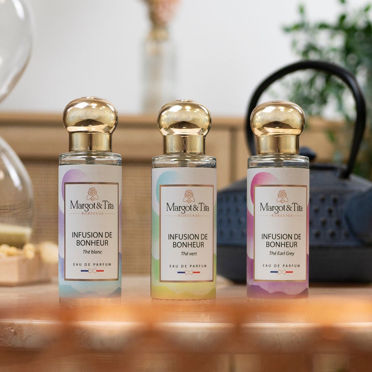 義法香氛選品店Anelet打造全台首座 「香品BAR」,引進法國巴黎拉法葉百貨高人氣入門香水Margot&Tita。品牌選用純正法國波爾多血統淡香精調香,每一款的誕生都是調香師從日常裡的記憶趣事找到靈感軸線,再由設計師為每款瓶身穿上法式風情的藝術標籤呼應,搭配情境十足的香味命名,還可以依照不同的場合、穿衣風格、當日心情選擇單獨噴灑或疊香組合,隨心所欲創造個人專屬的訂製香氛,極具法式精神的細節刺激著我們的感官。本次推出全新四款茶香「INFUSION DE BONHEUR 一盞茶時」系列,為品牌首度跨海調研之作,由Anelet共同研發與獨家引進,台灣地區限定推出。
