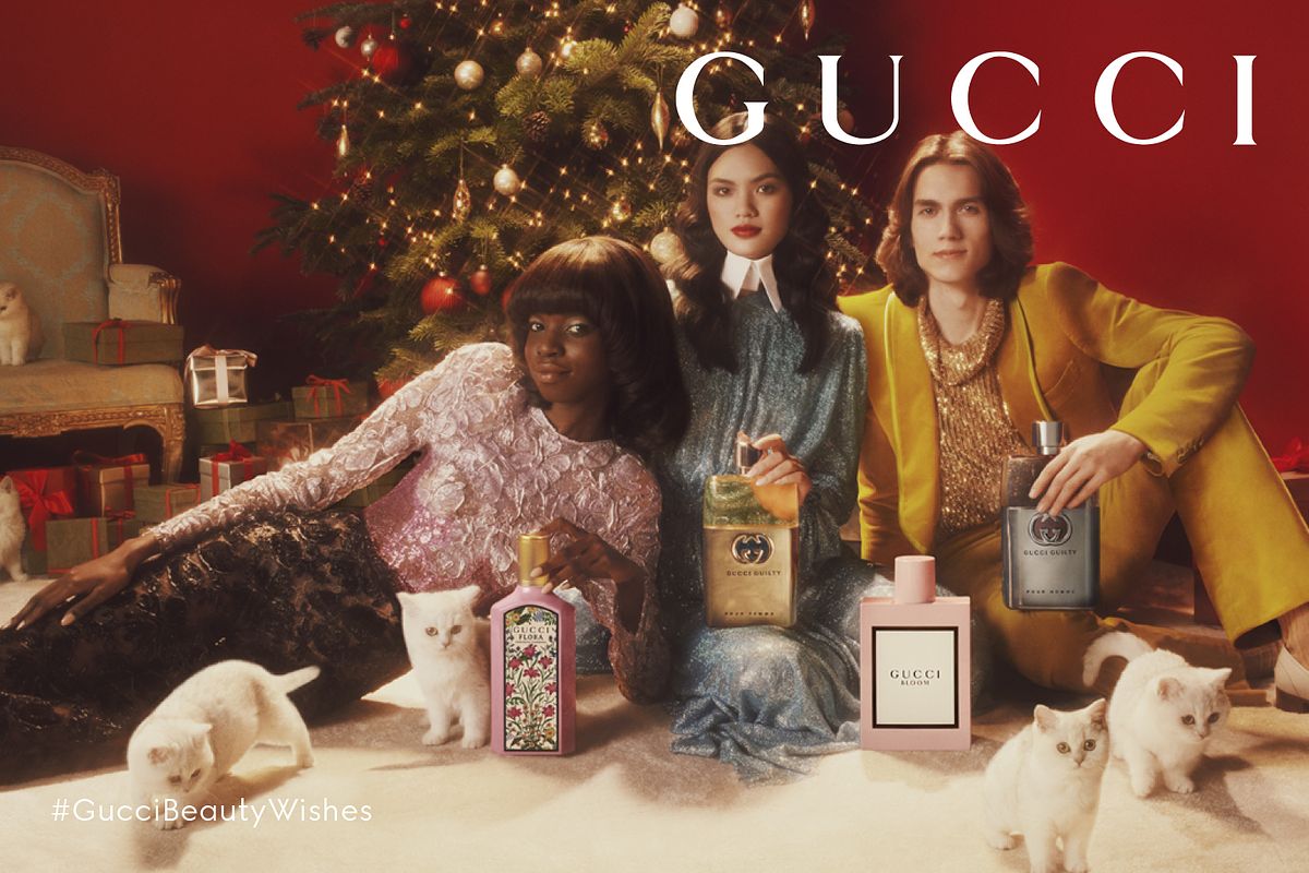 由創意總監 Alessandro Michele、攝影師Mark Peckmezian、藝術指導Christopher Simmonds 製作出歡樂節慶的形象概念;在形象概念中,一群人被可愛的小貓環繞著,並拿著Gucci 香氛拍照紀念,象徵著節慶歡樂的氣氛,互相展示分享最美麗的禮物,彼此繫著最珍貴的感情。