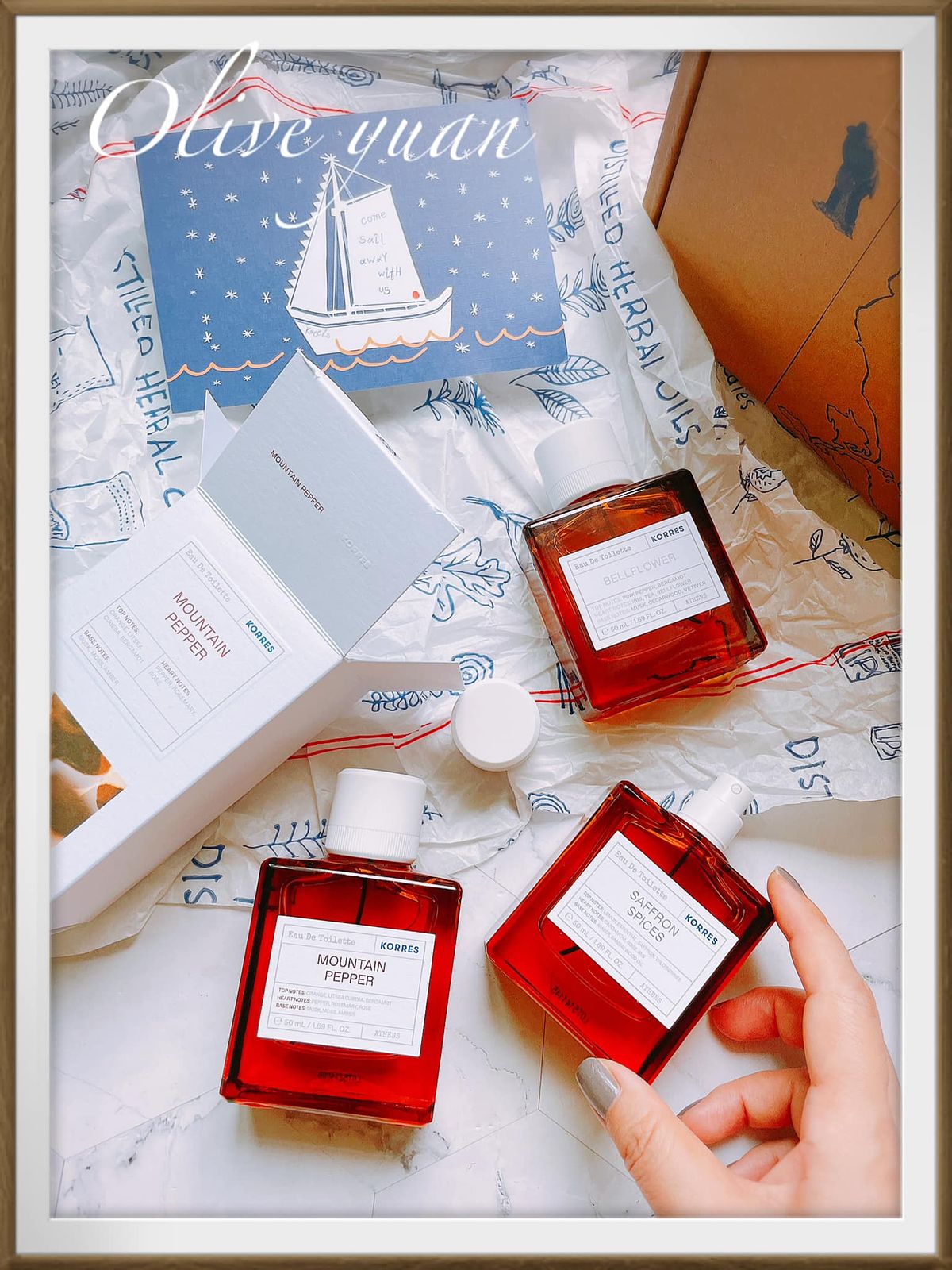 而且KORRES香水聞起來的味道,比較無法光看香調表來判斷風格,因為除了香料還用了精油,所以混合起來的味道較為特殊。