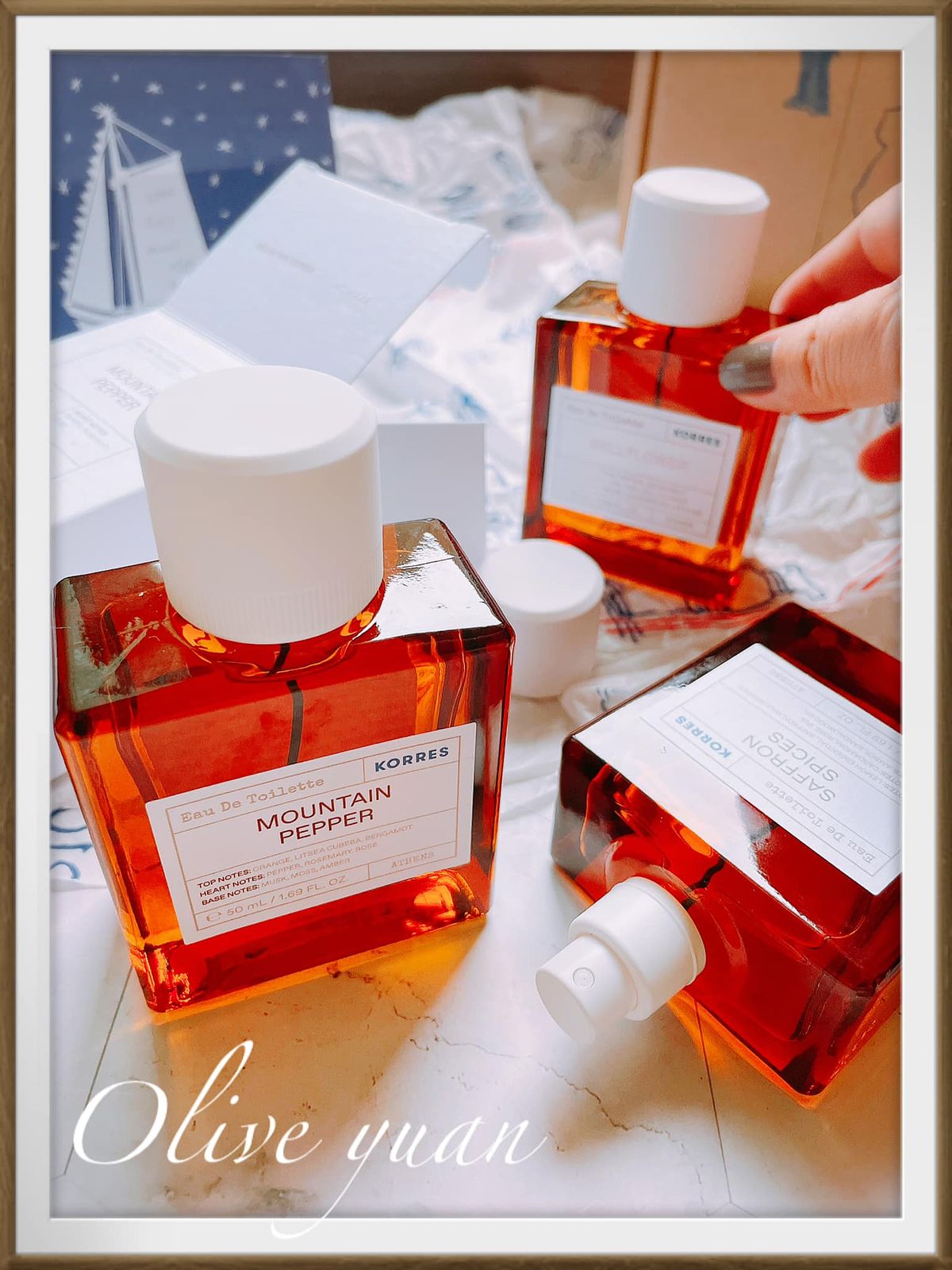 我個人對“番紅花”就是有私心,加了番紅花的香水聞起來就很不一般,但不是每個人都喜歡,再來KORRES香水都是以“甜”為基礎,所以最後還是會回到琥珀那種甜甜的味道,挺適合冬天,但如果是我、我會抽掉“野莓”讓它徹底SPICES這樣,因為荳蔻跟琥珀已經帶甜味了。
