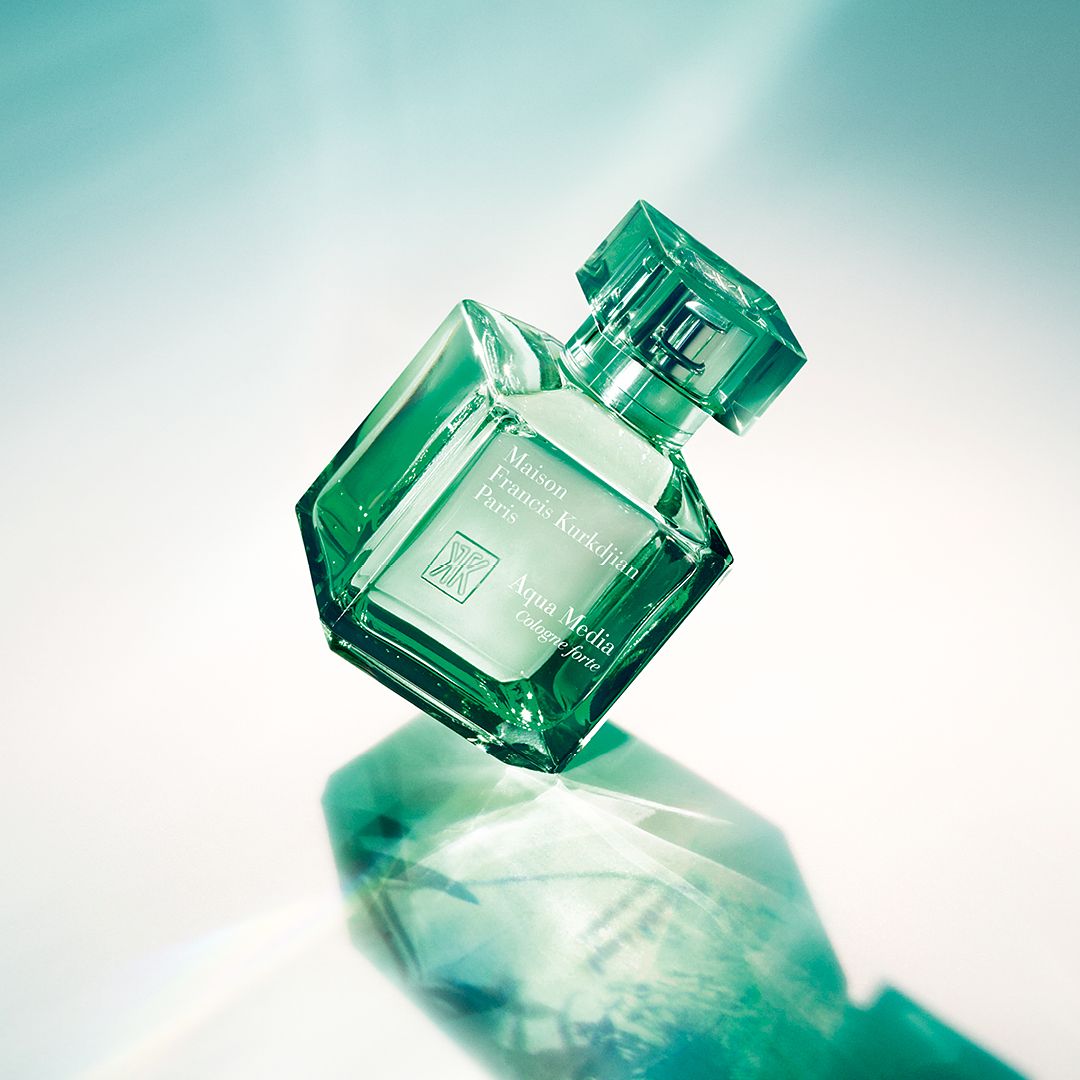 Francis Kurkdjian現為這系列增添一員,創作出第四篇章:Aqua Media Cologne forte 中間之水古龍 forte淡香精,象徵光與清新之間的中間點。