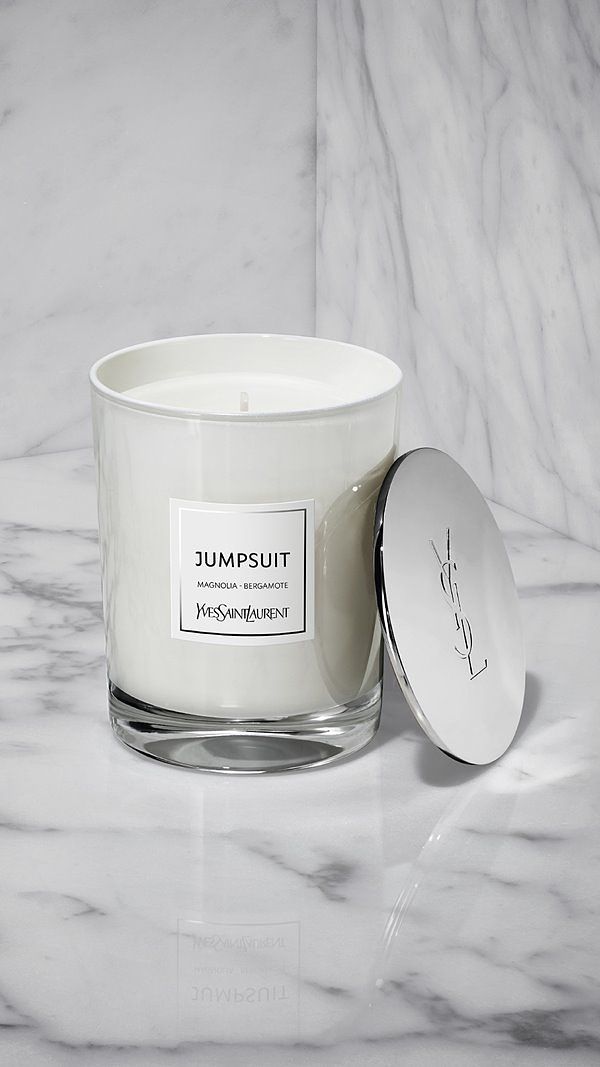 聖羅蘭先生以功能性連身褲裝,改造成俐落性感的開襟,賦予女性身體解放的喜悅象徵,此款香氛以春日裡花朵盛放,蕩漾著愉悅果香的氣息,來詮釋連身褲裝的瀟灑奔放,如晨曦清新的佛手柑,結合柑橘和苦橙,迸發爽朗果香的前調。馥郁飽滿的獨特木蘭花香,以柔和牡丹、玫瑰的芬芳,交織成如絲滑飽滿蜜桃花果香的美麗花束,柔滑的白檀木為這款光輝的香味,調和出一抹粉質氣息,讓所有的溫柔浪漫都藏匿在這燭光中。
