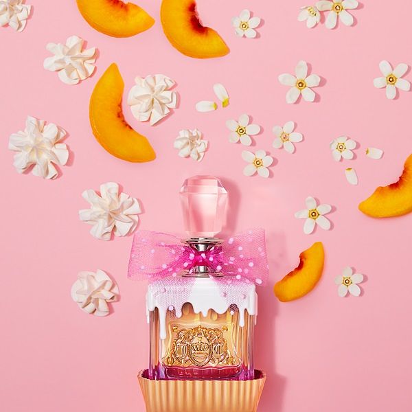 靈感來自杯子蛋糕外觀,頂部的鮮奶油糖霜垂涎欲滴,以 Juicy Couture 標誌的俏皮粉色蝴蝶結襯托黃金色瓶身,加上蛋糕底座設計,宛如無可抗拒的精緻甜點。就像 Viva 女孩一樣青春洋溢外更散發甜美風格,成功示範玩世不恭的活潑形象。