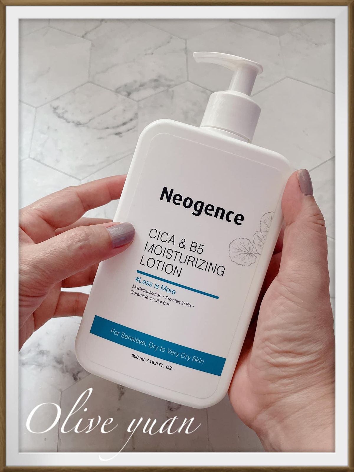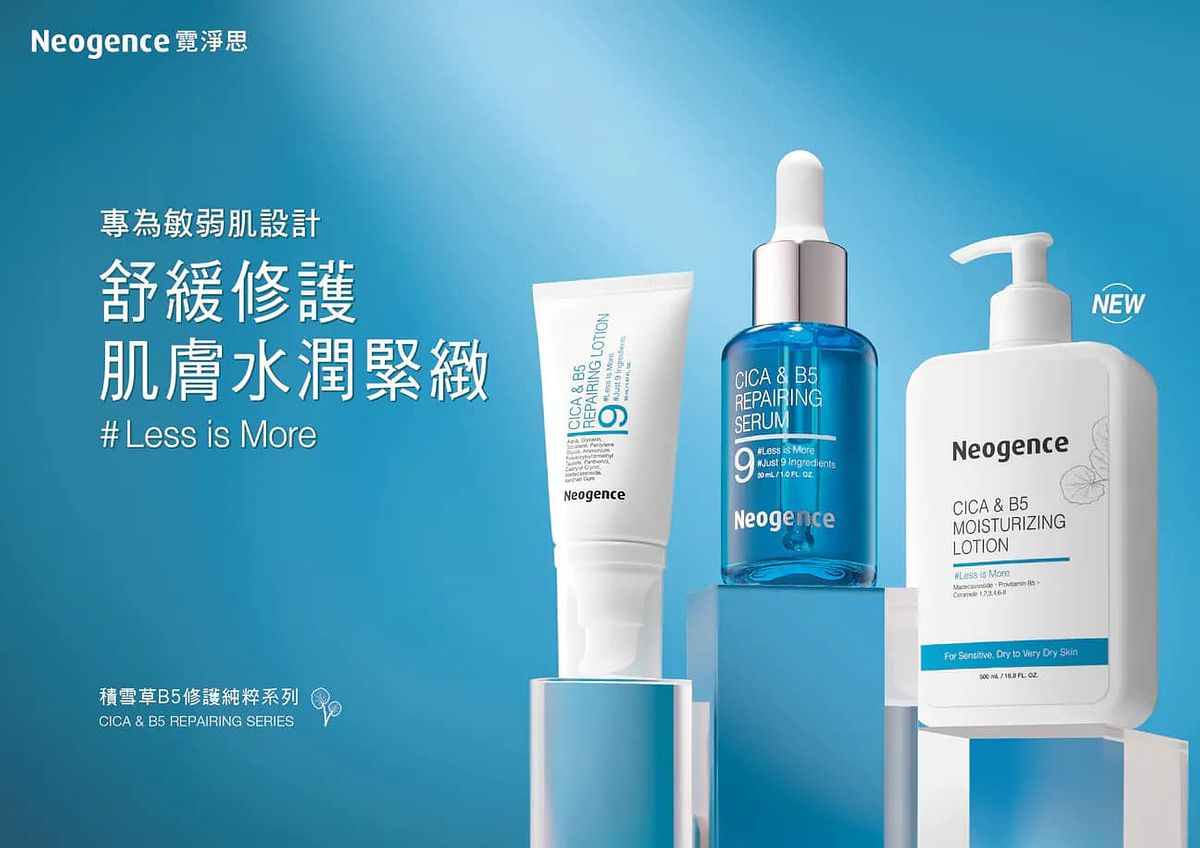 Neogence霓淨思的「積雪草B5修護水潤身體乳(500ml NT1,000)」也屬於我說的那種身體乳,這類成分主要也是針對乾敏肌,像是乾癢泛紅、脫皮有白屑屑、緊繃之類的,品名的2大成分就是用來舒緩修護及保濕。