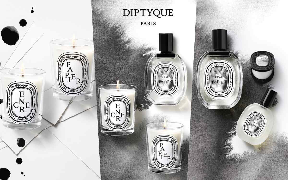 L’Eau Papier(紙染之水)淡香水誕生一週年後,Diptyque這次推出同款香調的其他用香儀式精品,以及兩款限量版香氛蠟燭:Encre(水墨)與Papier(紙絹)。