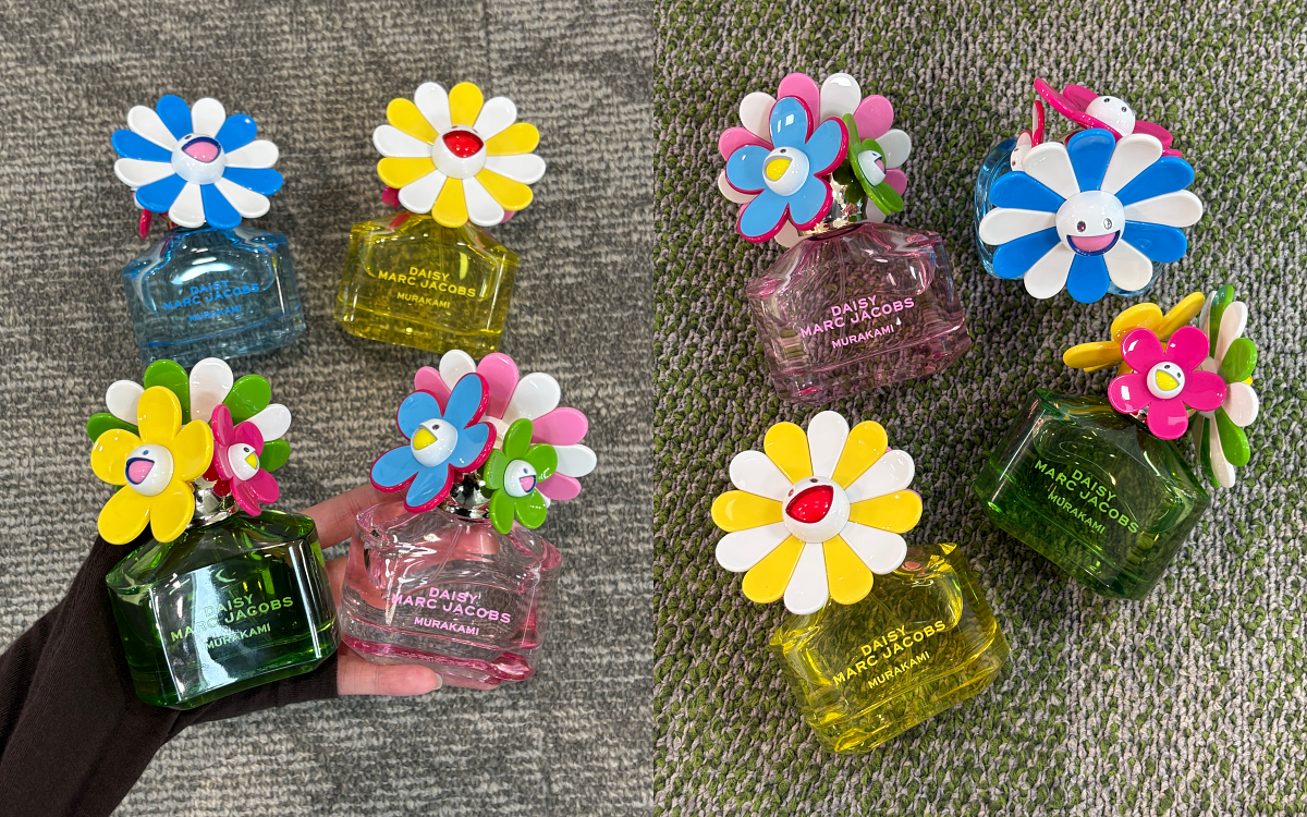 Marc Jacobs 攜手日本藝術家 Takashi Murakami,推出全新 Marc Jacobs x 村上隆聯名香氛,以標誌性花朵符號為靈感,將經典香氛重新演繹為充滿活力、色彩與想像力的藝術作品。經典的小雛菊香氛瓶以四種鮮明色彩重新演繹:黃色、粉紅色、綠色與藍色。整體色彩調性明亮而充滿趣味,非常有夏日的活潑氣息!