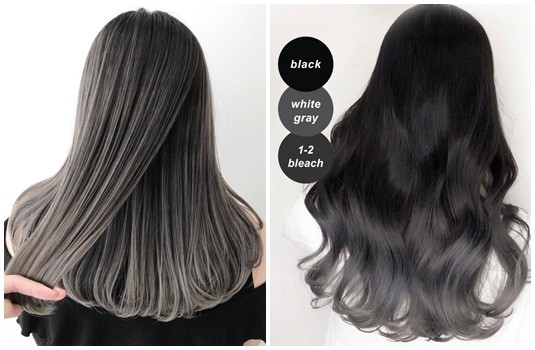 這款刷色染不一定只有淺色調的髮色適合,若喜歡深色黑髮,又想要在髮色上變換一點造型,就可以像左圖一樣,頭頂維持黑色法,只在髮尾染上灰色調製造漸層感!喜愛淺色調髮色的女孩,則可參考右圖~深淺色不同的刷色染,創造出不同的造型氛圍。