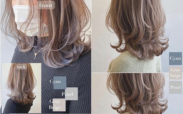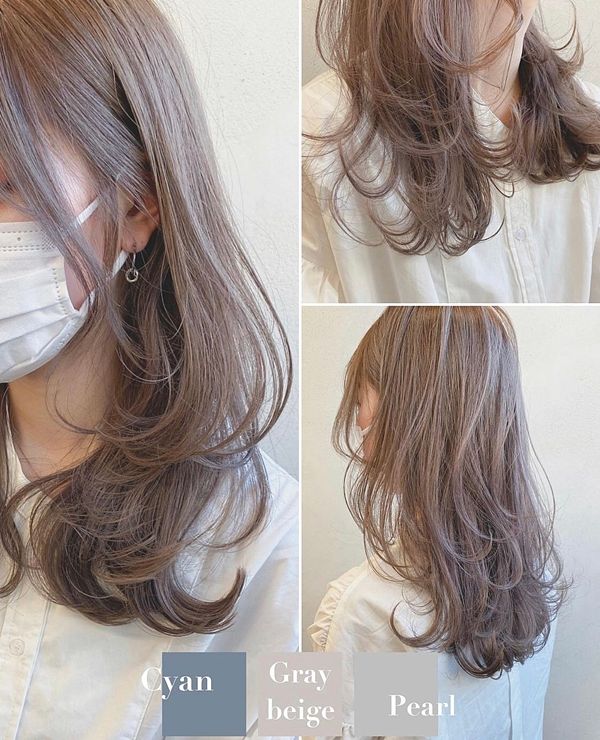 首先要推薦給大家的第一個色選,是珍珠灰冷淡風透色染,這款染髮色調包含了藍色、灰色與珍珠色選,這樣的調色提升了棕色髮的透明感,讓髮絲更顯輕盈!且珍珠灰白色,更悄悄地讓髮色具質感光澤,跳脫以往常見的棕色調染髮!