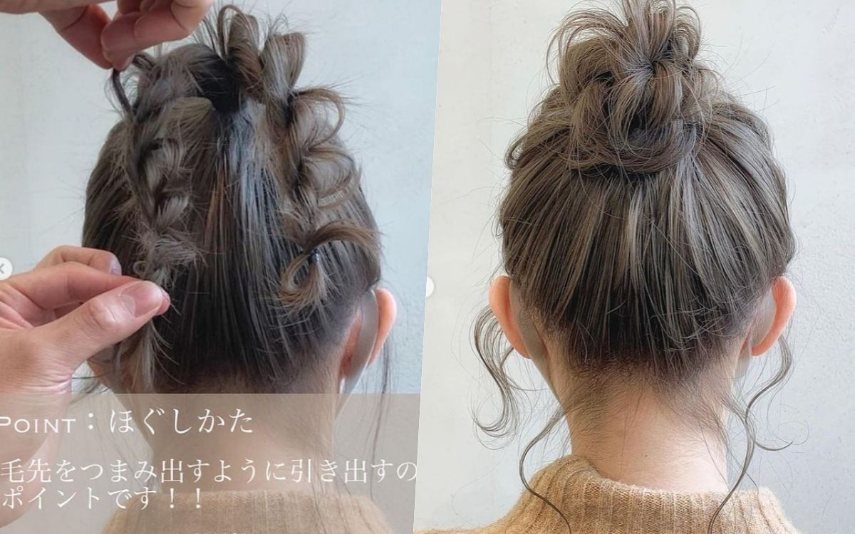 運用辮子編出的丸子頭看來視覺更有層次變化、就算髮量較多也很容易就能固定住。