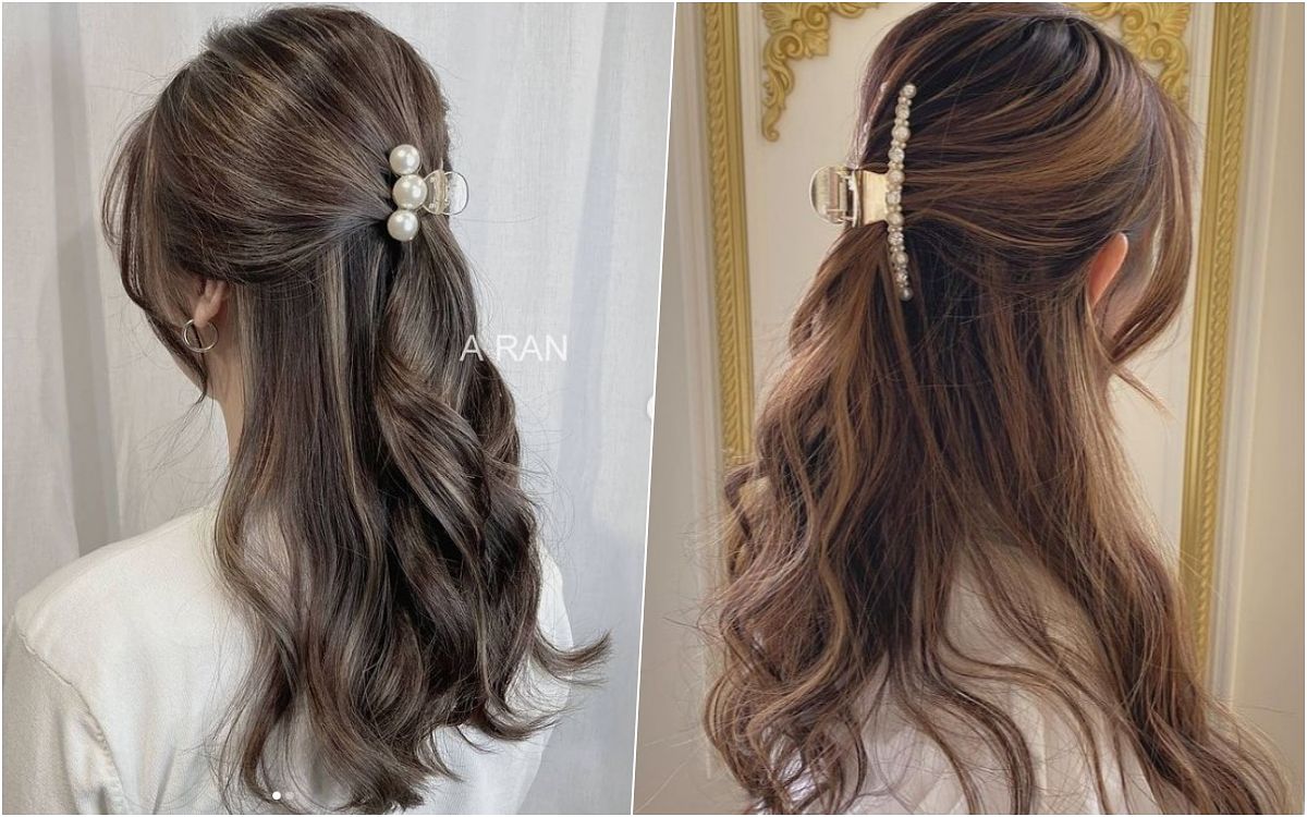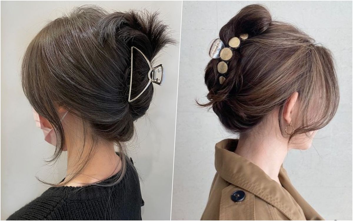 半丸子頭的盤髮在近期也以柔美優雅感受成為韓國女生心中的最愛髮型,除了盤髮之外、用造型感鯊魚夾裝飾也是很流行的方法,好上手、視覺更是唯美又充滿韓味。