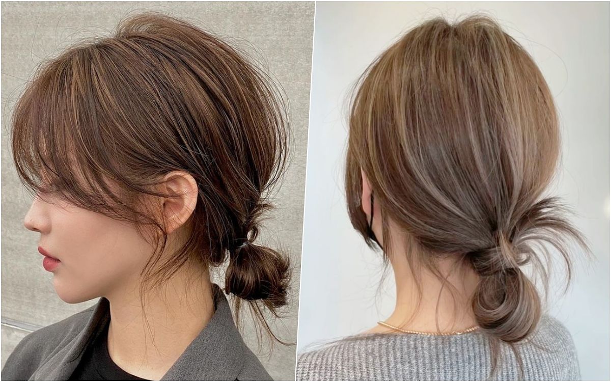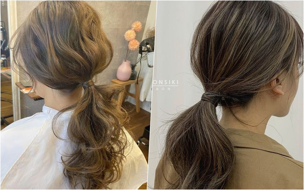 蓬鬆感低馬尾則是日韓女生都十分常用的髮型,差別在於日系低馬尾會使用較多的盤髮技巧、韓系則偏好簡單的在馬尾辮上多繞一圈來增加層次感。