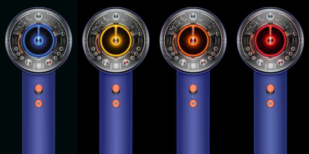 圖片來源:Dyson 而頭皮最佳吹整溫度設定在 55°C,也是源於 Dyson 工程師及頭髮科學專家進行大量頭髮和頭皮研究以及測試下,發現過熱的溫度會加快水份流失進而造成多種頭皮問題產生。55°C 正是鎖住頭皮水份的最佳溫度,同時也有助於強韌頭皮屏障4,實現秀髮的水潤光澤。在頭皮保護模式下,LED 溫度指示燈的顏色會因應吹風機和頭部之間的距離變化顯示當前吹風機溫度自動由冷風(藍色)→低溫(黃色)→中溫(橙色)→高溫(紅色),從而降低極端高溫對頭皮的熱傷害,達到養護的效果。