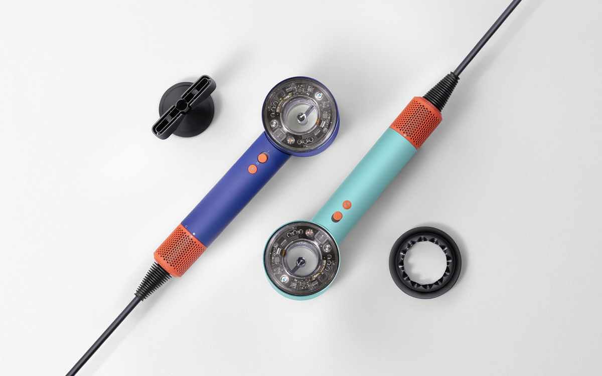 圖片來源:Dyson 為了突顯最新的嵌入式感應技術,Dyson 團隊亦十分注重吹風 機的外型設計:以透明端蓋顯示內部科技,並運用大膽自信的 色彩:綠松石(Ceramic Patina/ Topaz),以及長春花藍(Vinca Blue/ Topaz)。Dyson Supersonic Nural™ 吹風機即日起(16 日)在台上市,附帶五個配件,售價為台幣$14,600。如欲了解 更多詳情,請瀏覽 https://www.dyson.tw。