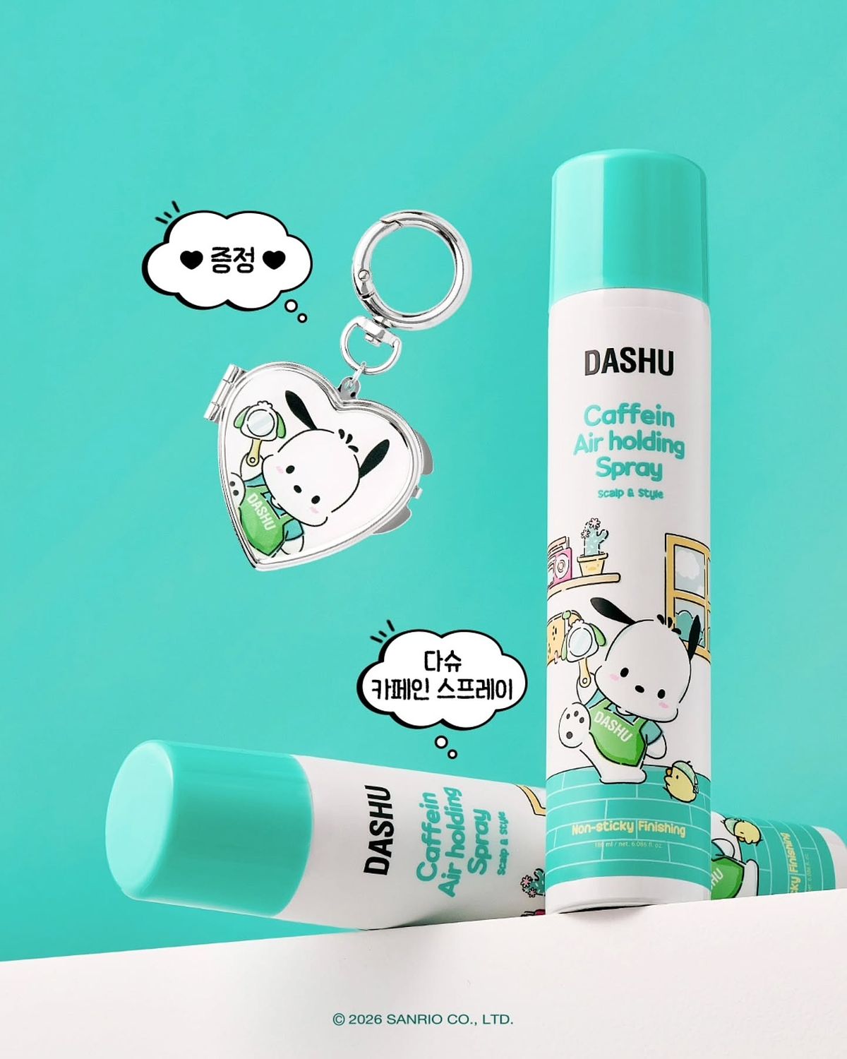 最後是許多人愛用的 DASHU 咖啡因定型噴霧。定型力表現出色,同時維持清爽質地,不會讓頭髮看起來厚重扁塌。這次的組合贈品是帕恰狗鏡子吊飾,隨手掛在包包上,補妝或整理瀏海時都很方便,也為日常多添一點可愛細節。喜歡這系列商品的話,已經在 Olive Young 正式開賣囉!