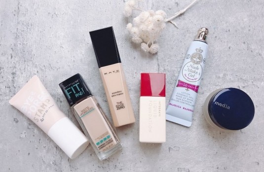 這次測試的開架粉底共有六個品牌,都是網路討論度超高的品項,分別為KATE 零瑕肌密微霧粉底液、媚比琳FIT ME反孔特霧粉底液、媚點粉嫩保濕礦物粉底霜、za毛孔bye2拍拍粉底、戀愛魔鏡水感透顏粉底精華與INTEGRATE迷人光采粉底精華,會從質地、妝感前後差異、乾紋跟遮瑕力四大面向做比較。