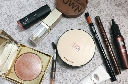 這款眼妝選擇的眼彩單品其實女孩們化妝包應該都有,以輕透感的粉嫩色調與光澤來帶出偽素眼感,取代濃厚的陰影色,雖然看似清淡但是大眼效果卻很棒、而且清新質感讓年齡也瞬間減掉好幾歲。