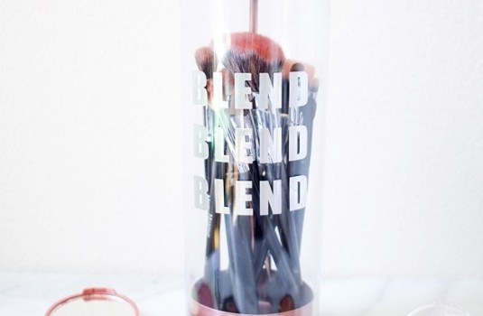 相信很多女孩都很喜歡這個收納法。刷具放在刷具筒內雖然方便收納,但基於有大大小小、粗細不一的尺寸,在拿取時總是會有點卡卡的,並且需花點時間才能找到它!所以建議在刷具筒內倒入珍珠或亮片等以固定刷具,排排站好的話會更方便收納與拿取!