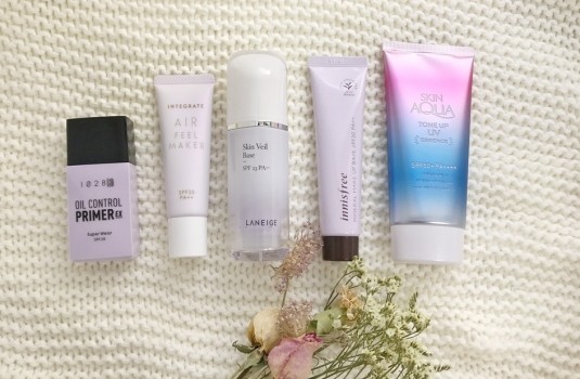 雖然都是紫色飾底,但隨著偏色、質地的差異,所適合的膚質和呈現的效果都大不相同,1028和INTEGRATE的偏乾爽,很適合油性肌膚;曼秀雷敦可說是任何膚質都能夠使用;LANEIGE和innisfree保濕不油膩,乾肌和一般肌都超適合使用~