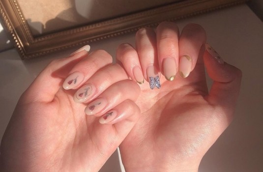 如果真的擔心無法好好保養立體指彩,手繪蝴蝶也是個不錯的選擇,考驗著美甲師的手藝,細膩的蝴蝶真的很美!