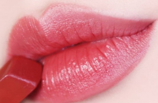 「#103」是很可愛的蜜桃珊瑚色,柔和色調加上淡淡的柔霧質感,讓唇妝看起來有種萌萌的無害感!
