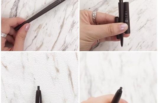 它的筆芯為1.5mm,非常細,質地偏硬有點像鉛筆的質感,可以輕易勾出自然毛流。質地較硬有幾個好處,像是重複塗畫時不容易結塊、顏色比較持久,但相對的顯色度就是中等,顏色不會太重比較自然,很適合新手使用。