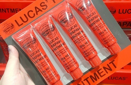 去澳洲旅行一定要帶回的木瓜霜,它之所以如此有名、人手一條,關鍵就在它便宜又實用,只要是乾燥的地方都可以抹,像是手肘、臉部、鼻翼、膝蓋等等,最好用的是拿來當作唇膜,先用它厚厚的塗抹在雙唇,然後使用保鮮膜敷起來,雙唇立刻就會變得水潤,當然不用保鮮膜當作一般護唇膏使用也是沒有問題。