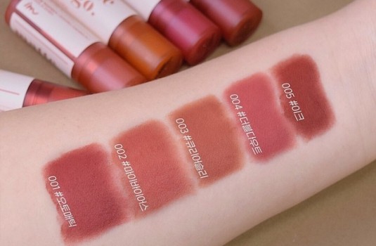 質地是厚實的柔霧質感,因添加維他命E保濕因子,在擦上唇瓣時輕盈滑順,並能維持柔嫩保濕感。5色都很可愛,主打推薦色是「001#玫瑰司康土(帶粉調玫瑰土色)、002#肉桂貝果土(帶橘調肉桂土色)、003#胡桃戚風土(帶焦糖胡桃土色)」