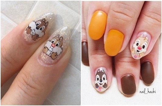 每次看到奇奇蒂蒂,就被它蓬鬆的毛髮與鼓鼓的腮幫子可愛到,放在指甲上一點都不突兀,搭配簡單的亮片底色,感覺一秒進入迪士尼的夢幻世界!