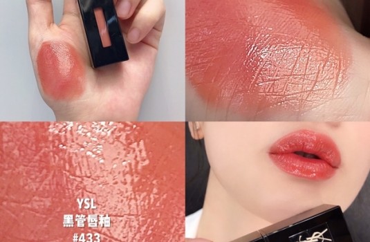 YSL黑管唇釉也推出了茶奶昔新色,共有4支茶奶昔色號,顏色會比唇膏的再更橘、更茶棕一些,最推薦「433櫻花茶奶昔」,也是四色中紅色調比較多的一款!