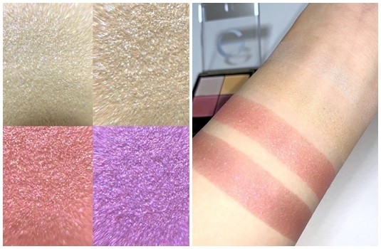 1.使用眼影盤右上方的金色打底整個上眼窩。