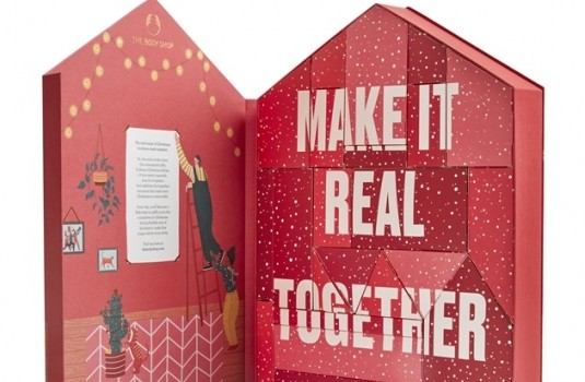 2020年THE BODY SHOP推出2款以「家」為設計概念的倒數禮盒,透過童趣的插畫設計,體驗充滿英式風格的溫馨耶誕,倒數月曆集結THE BODY SHOP最具人氣的頭髮、臉部保養、彩妝及身體保養明星商品,讓人們在倒數時刻,天天都充滿驚喜與滿滿幸福感!紅色豪華版共包含25項經典產品與限量產品,包括乳油木果修護護手霜、英皇玫瑰嫩膚沐浴膠,以及杏奶花蜜身體滋養身體霜…