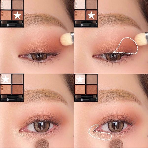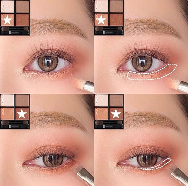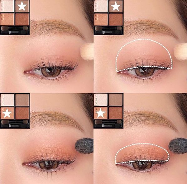 STEP1-使用眼影盤右上方眼影(星號)塗刷整個上眼窩。