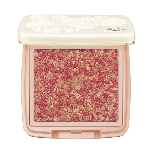 ⚫ 運用柔膚油與定妝粉為基底,質地絲滑服貼,能輕易融於肌膚打造自然紅暈。另添加多孔型粉末,其具有柔滑的表面和色彩的延展性和極佳的定色效果,能使腮紅均勻附著於肌膚表層,不結塊好堆疊,妝容持久不黯沉。