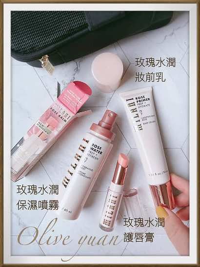 第五大類我好喜歡,是玫瑰水潤系列,「玫瑰水潤妝前乳(NT480)」有甜甜的玫瑰香,能修飾細紋毛孔、舒緩泛紅、保濕鎖水、提亮膚色,能讓後續的底妝更完美,但比較可惜沒有防曬係數,「玫瑰水潤保濕噴霧(NT480)」也超好用,保濕效果還不錯,不能出門的現在,在冷氣房中也可以隨時補充,「玫瑰水潤護唇膏(NT440)」已經放在我的床頭,成分有玫瑰油、椰子油及維他命E,味道好香甜!