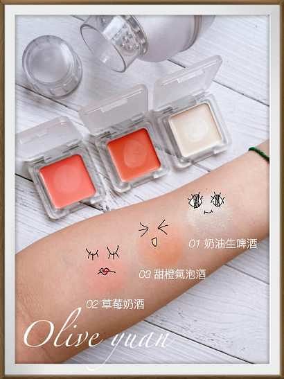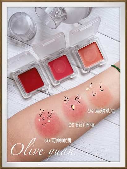6款顏色連色號都可愛,看完會很想喝飲料,例如奶油生啤酒、草莓奶酒一定很好喝。獨特「霜轉粉技術」,一抹由慕斯狀轉為細緻粉末,好暈染不黏膩,更不會突顯毛孔!