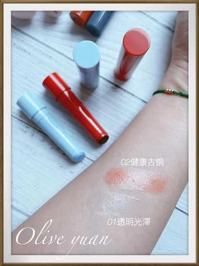 艾杜紗的法式閃耀雖然是夏日限定,但也才剛推出沒多久,不要被那些秋冬彩妝嚇到,現在還是夏天呢!「一抹Q彈潤唇膏(NT465)」有兩個顏色,01透明光澤可直接當護唇膏,02健康古銅折可以直接當唇膏使用,01有銀色微珠光,02有古銅珠光粉末,細緻亮片投射出的光芒好像美人魚鱗片。