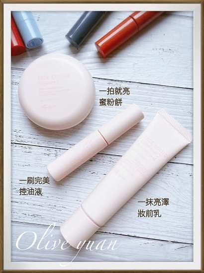 法式零負擔輕底妝有三個產品,使用很簡單,而且真的能維持肌膚清爽一整天,先用「一抹亮澤妝前乳SPF25 PA++(NT620)幫肌膚打底、潤色、防曬,添加80%美容液及「毛孔光亮粉末、粉紅校正粉末、吸附油脂粉末」,讓肌膚第一時間修飾毛孔。
