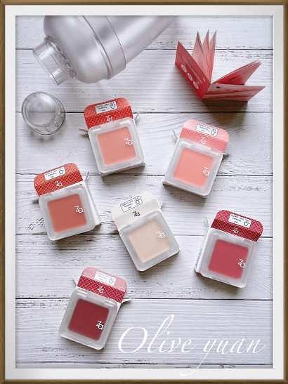 好可愛喔它們!不愛霜狀腮紅的我都覺得很容易上手,因為質地會轉換成粉狀所以很好推勻,濃淡也容易控制,它們是「Za潮色微醺腮紅(3.5g NT320)」共6色。