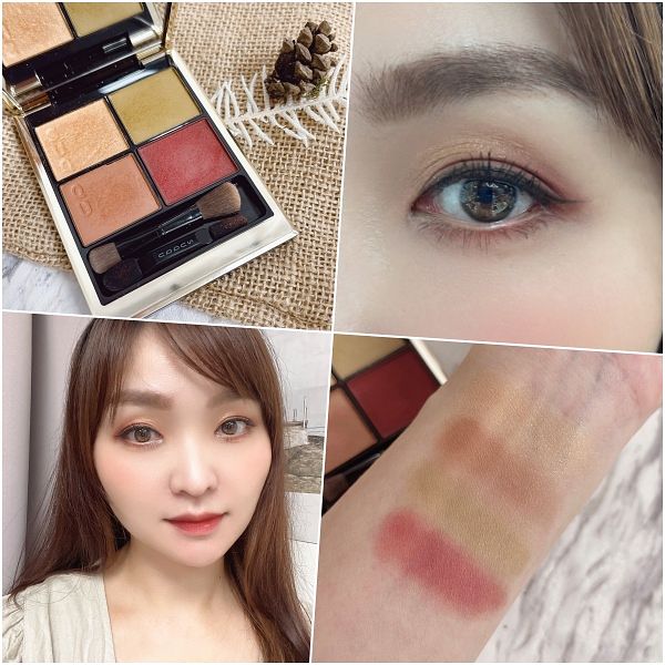 一直都是SUQQU眼彩盤的愛用者,每一季新色登場都會想馬上試色,這盒是今年秋冬新色,像是樹木般自然色調,3色霧面粉質搭配1色光感色,我習慣使用左下當作眼窩底色,再用右下重點加強在眼褶與下眼瞼,最後用左上微珠光疊刷於上眼頭,能讓眼睛更顯明亮有神!SUQQU眼影完全不飛粉,上妝一整天也不會卡粉暈妝,現在我幾乎每天都用這一盒!