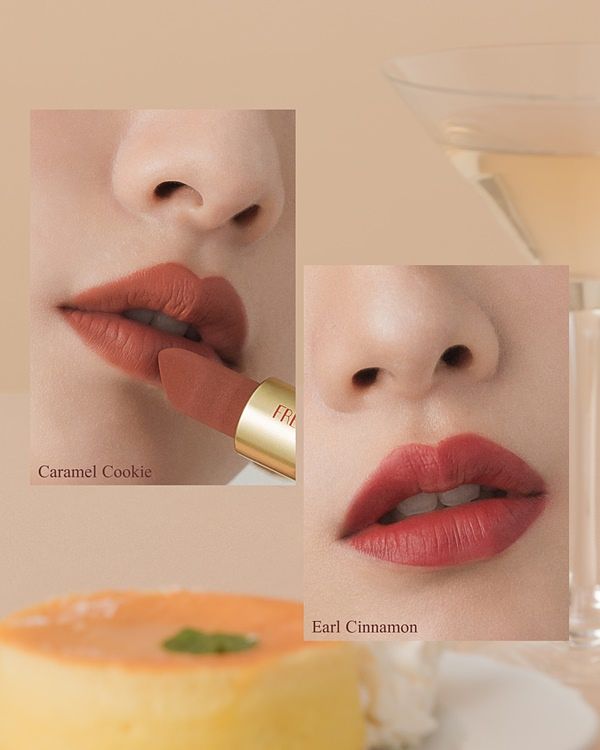 《舒芙蕾奶酪絲絨唇膏》長期研究臺灣女孩日常最愛的唇膏顏色,將季節與時下流行色澤完美結合,推出共四款新色:#RB30奶酥豆沙、#CC31焦糖曲奇、#EC32伯爵肉桂、#AP33杏仁甜桃,不挑膚色的濃郁色,優雅溫柔彷彿置身法國鄉村烘焙坊,從容慵懶般的柔和氛圍,搭配甜點的低飽和濃郁色調,素顏淡妝皆能駕馭,展現妙齡女孩般溫柔愉悅的氣質。