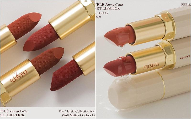 法式甜點帶來戀愛般滋味,臺灣彩妝品牌FreshO2所推出《舒芙蕾奶酪絲絨唇膏》以絕美細緻的絲絨壓紋,搭配柔軟綿密的滑順,充滿浪漫與可口雙重質感,持續獲得高度口碑。將美味甜點化身為精美唇膏,不僅值得細細品味,每一抹都要帶來驚豔的讚嘆,色澤營造出法式女人的優雅與浪漫,更加突顯出誘人可口的妝容視覺。2020和2021年春天分別推出第一、二代「舒芙蕾絲絨唇膏」系列,持續好評且銷售至斷貨,今年春天再度推出第三代全新升級款,嶄新外殼與絕美新色,絲滑如奶酪般的極佳質地,整體風格手感設計到特調色澤,再現法式浪漫氛圍,絕對推薦唇膏愛好者包色典藏!